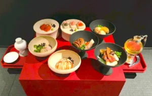 ◾️メニュー barrierでは、三方(さんぼう)をお膳として利用し、岡持ち(おかもち)に収められた三つのお椀料理に、サイフォンで抽出された一番出汁を注ぎます。 これにより、一杯のお出汁がお客様の食体験に奥深さと芳醇さを加えます。 barrierは、伝統的な日本料理のエッセンスを守りつつも、現代的なアプローチで新たな魅力を引き出すことを目指しています。 漆黒の空間で五感を研ぎ澄ませて、出汁に合う料理をお楽しみください。