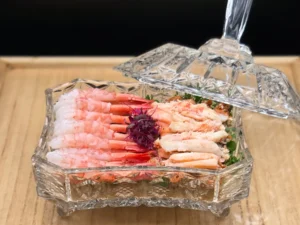 香箱ガニ2杯、甘エビ20尾、仕上げに金箔。